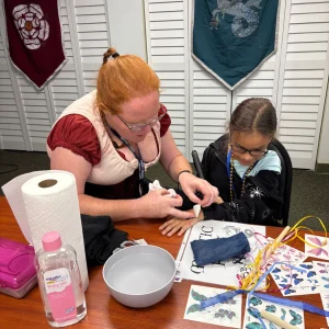 We were proud to welcome guest speakers from Mythic Adventures, a local Live Action Role Playing (LARP) group that brought our event to life with vibrant costumes, immersive storytelling, and exciting workshops tailored for our students who are blind or visually impaired.